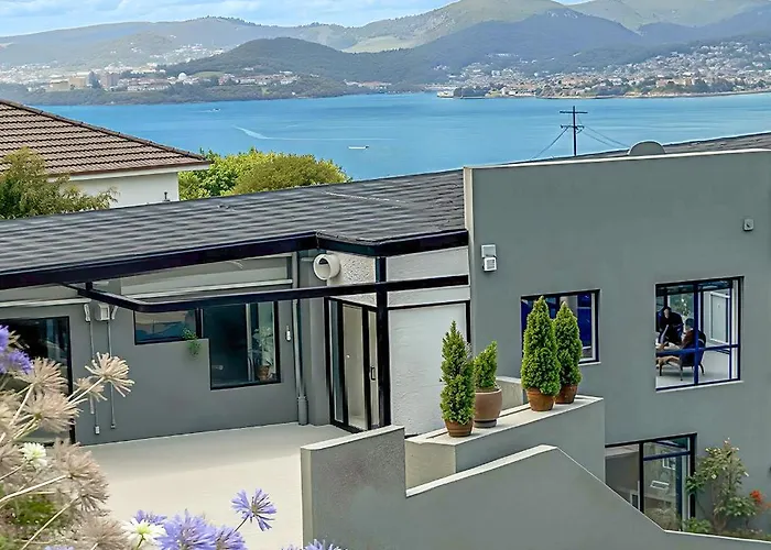 Nestled 10 minutes by car from the Battery Point Sculpture Trail, 4 Bedrooms Luxury Sea View Family Retreat In Sandy Bay Hobart villa entices guests to explore various tourist destinations nearby.